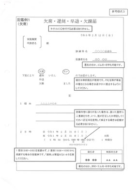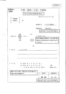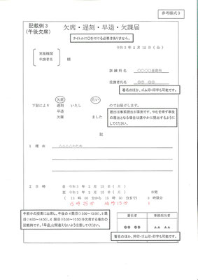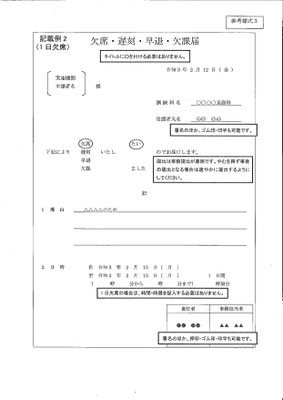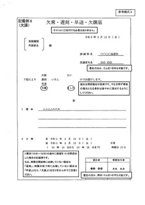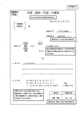 欠席されたとき(または予定が分かっているとき)Wordで記載し提出していただきます。