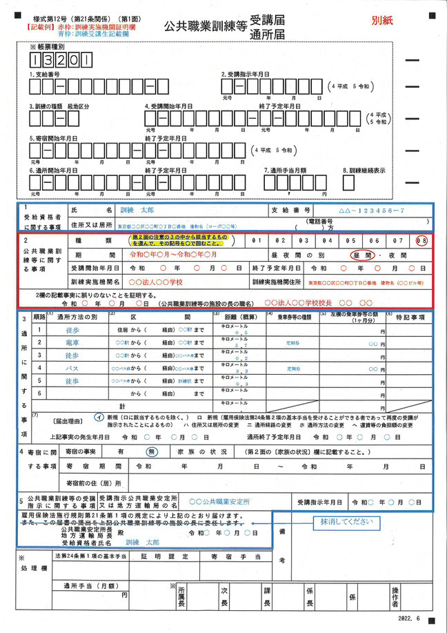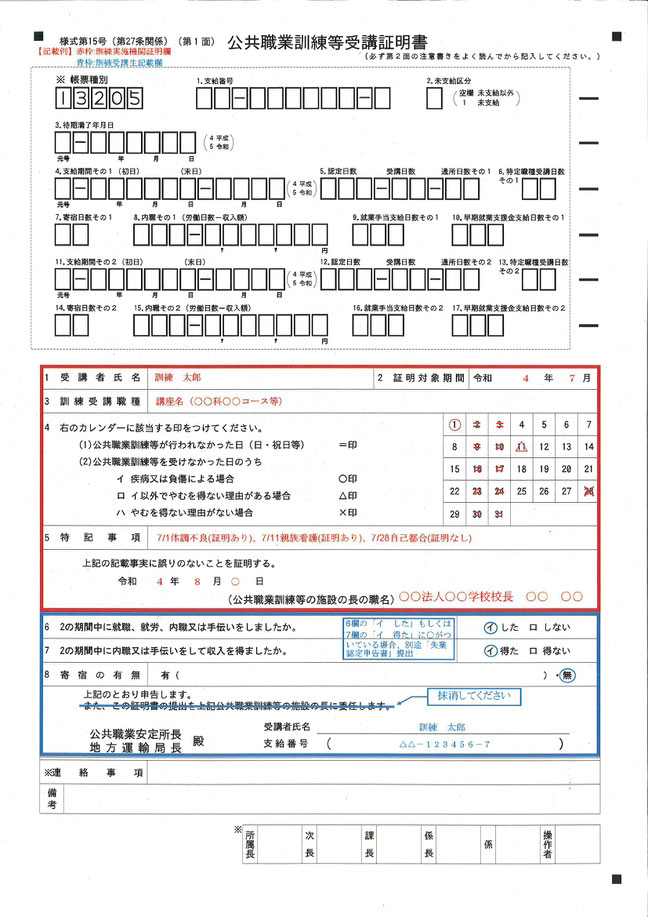 ①「職業訓練受講指示書のコピー(★原本は御自分で保管してください)
