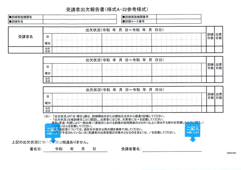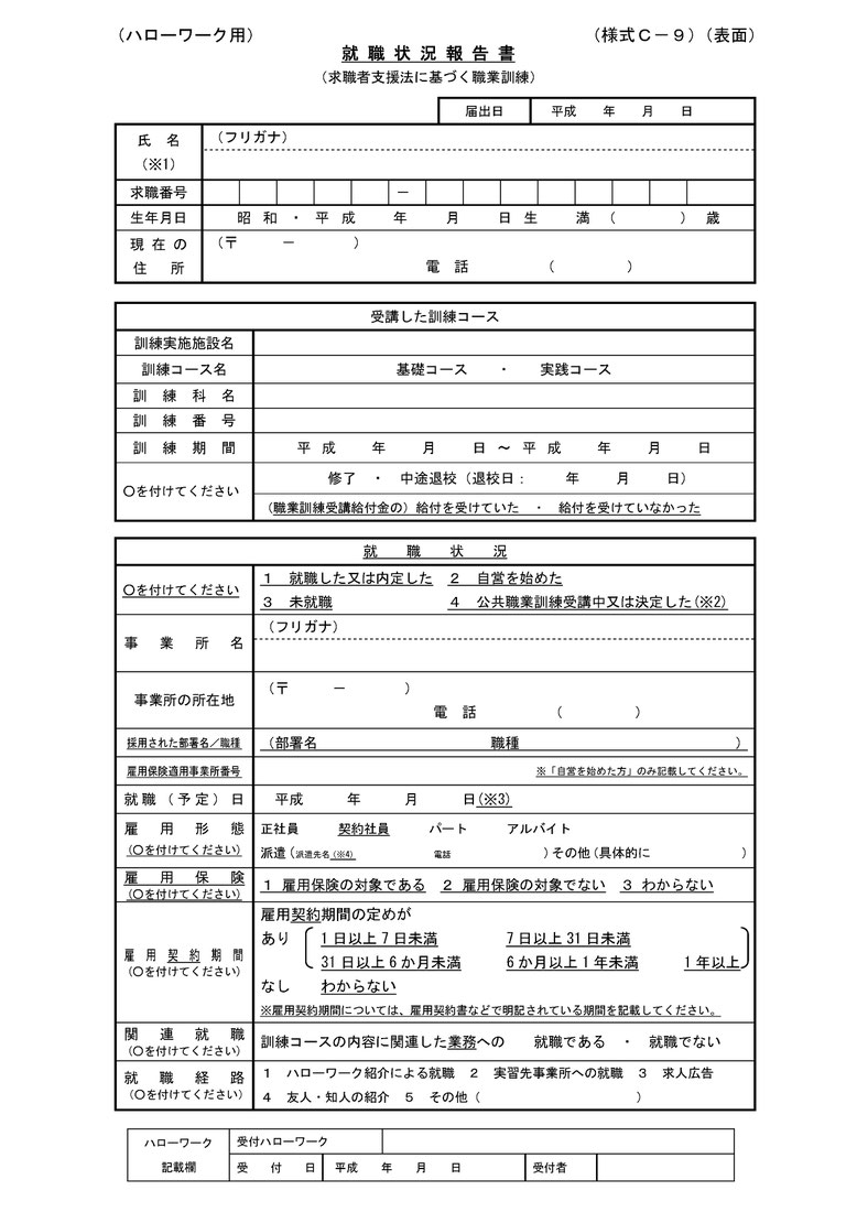 研修修了して3ヵ月後に就職状況報告書を提出していただきます
